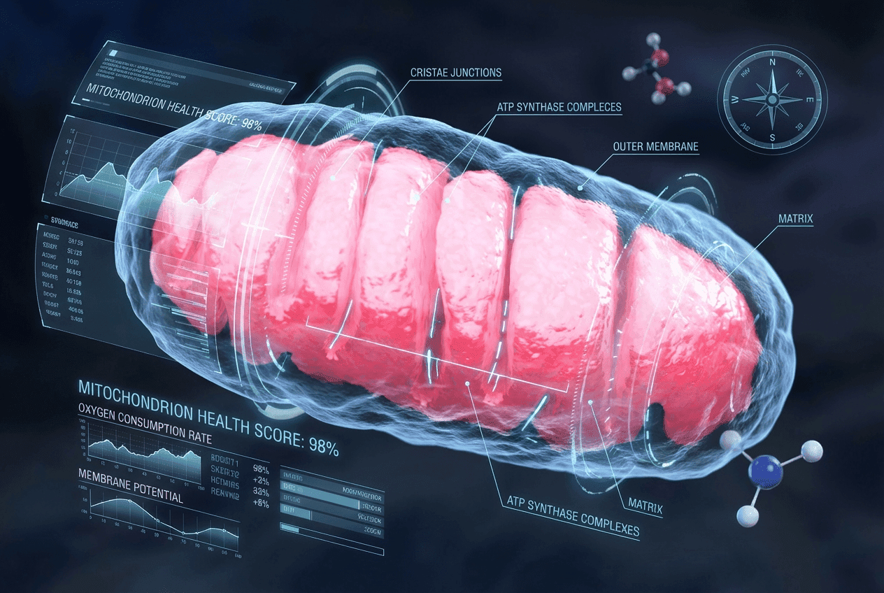 Mitochondrien sind die Kraftwerke der Zellen und produzieren ATP, die zentrale Energiequelle für Gehirn, Herz, Muskeln und andere Organe. Sie steuern Stoffwechselprozesse, unterstützen Zellschutz und Entzündungsbalance und beeinflussen Stressachsen, Hormone sowie Zellalterung. Ein gut funktionierendes Mitochondrialsystem ist entscheidend für Energielevel, Leistungsfähigkeit, Regeneration, Konzentration, Stimmung, Herz- und Muskelfunktion, Stoffwechsel und Immunbelastbarkeit.